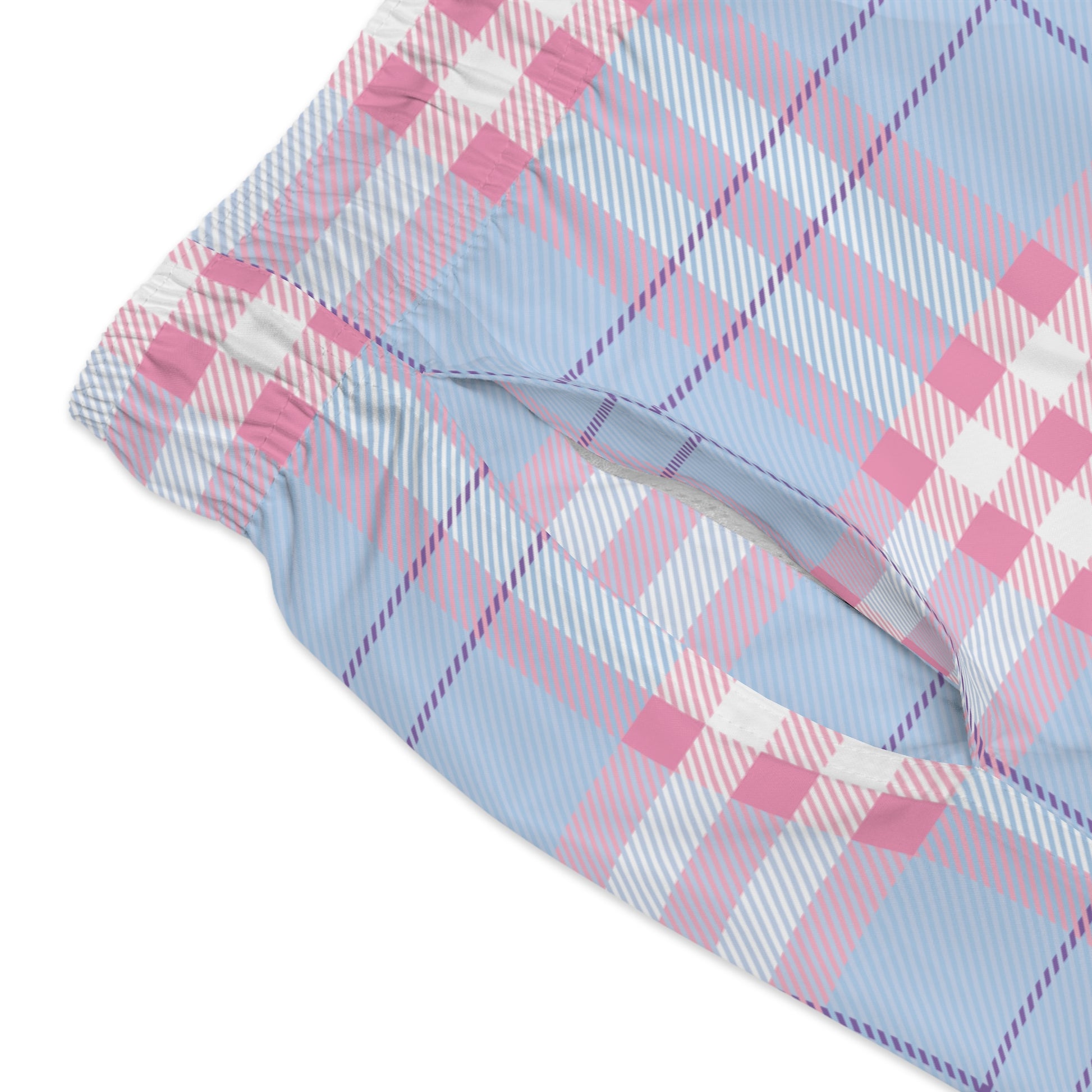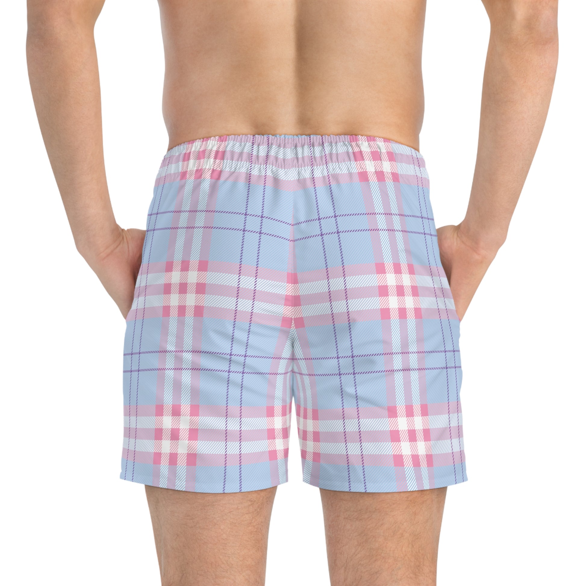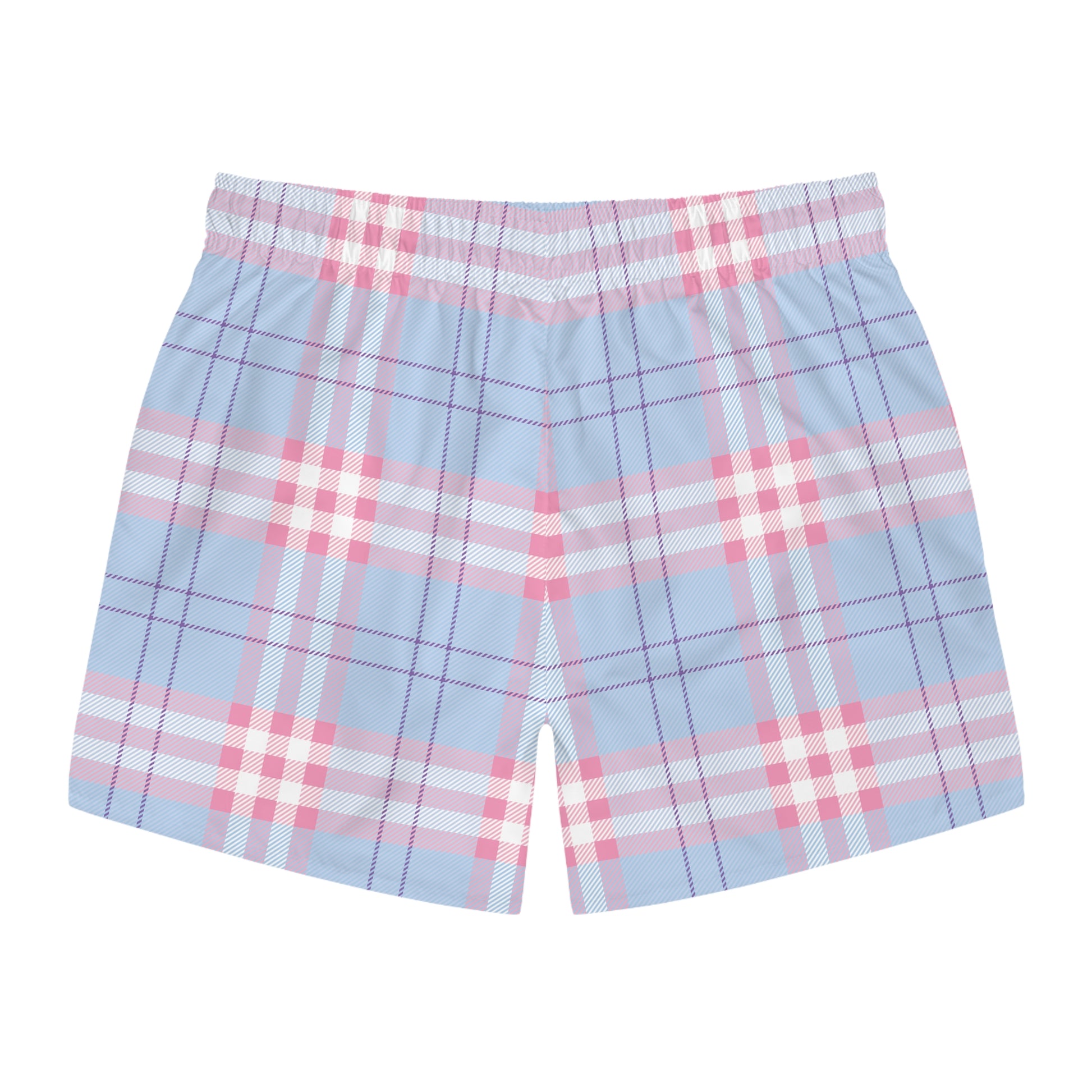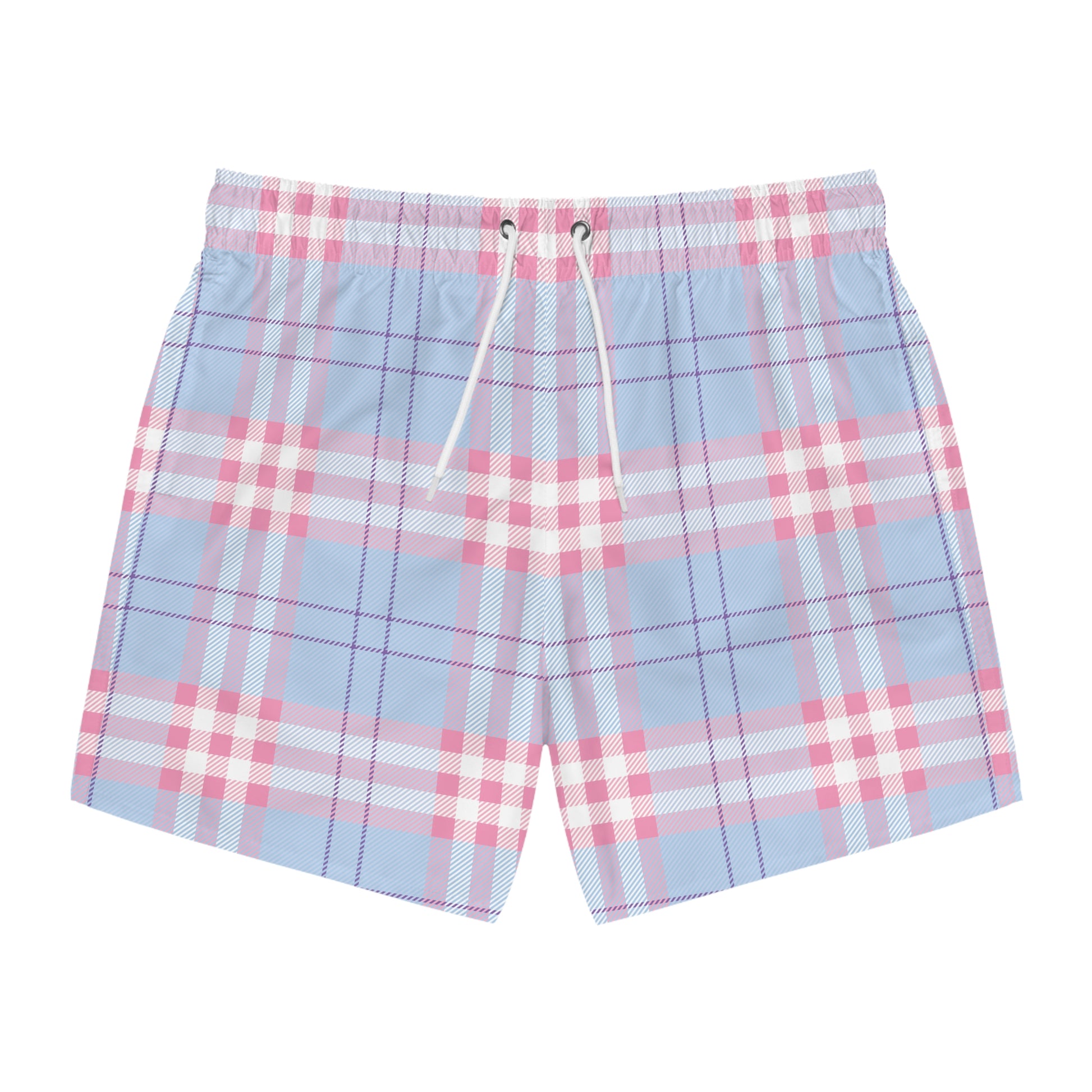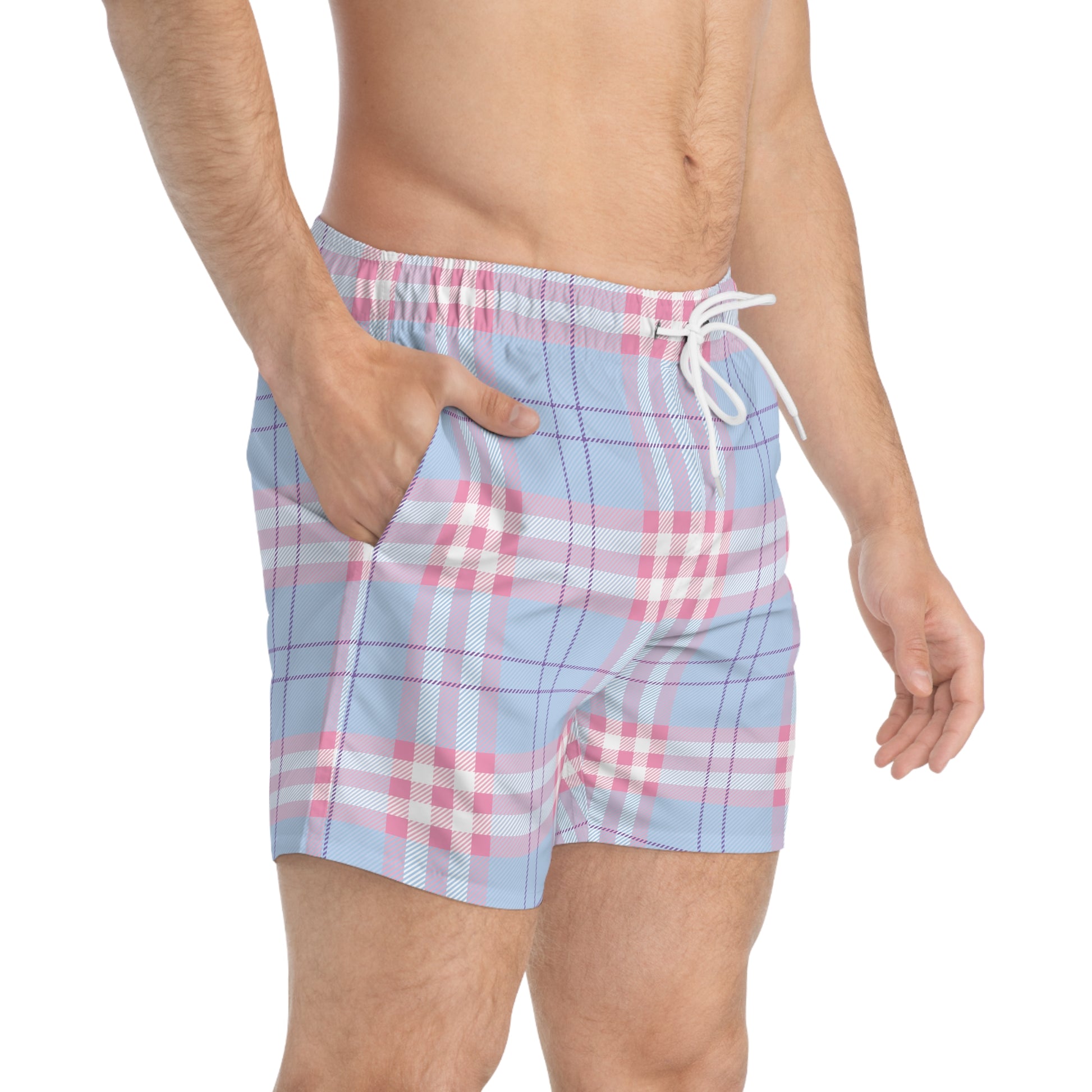 Trans Pride Tartan Swim Trunks for Beach Days, Summer Vacations, and Pool Parties